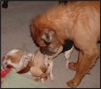 Man muß auch sagen, das Ringo sehr anpassungsfähig ist. Da er ja (wie auch Fips) ein waschechter Chihuahua ist, wir aber auch einen Shar-Pei (Bronski) haben, wird aus Ringo kurzerhand ein...